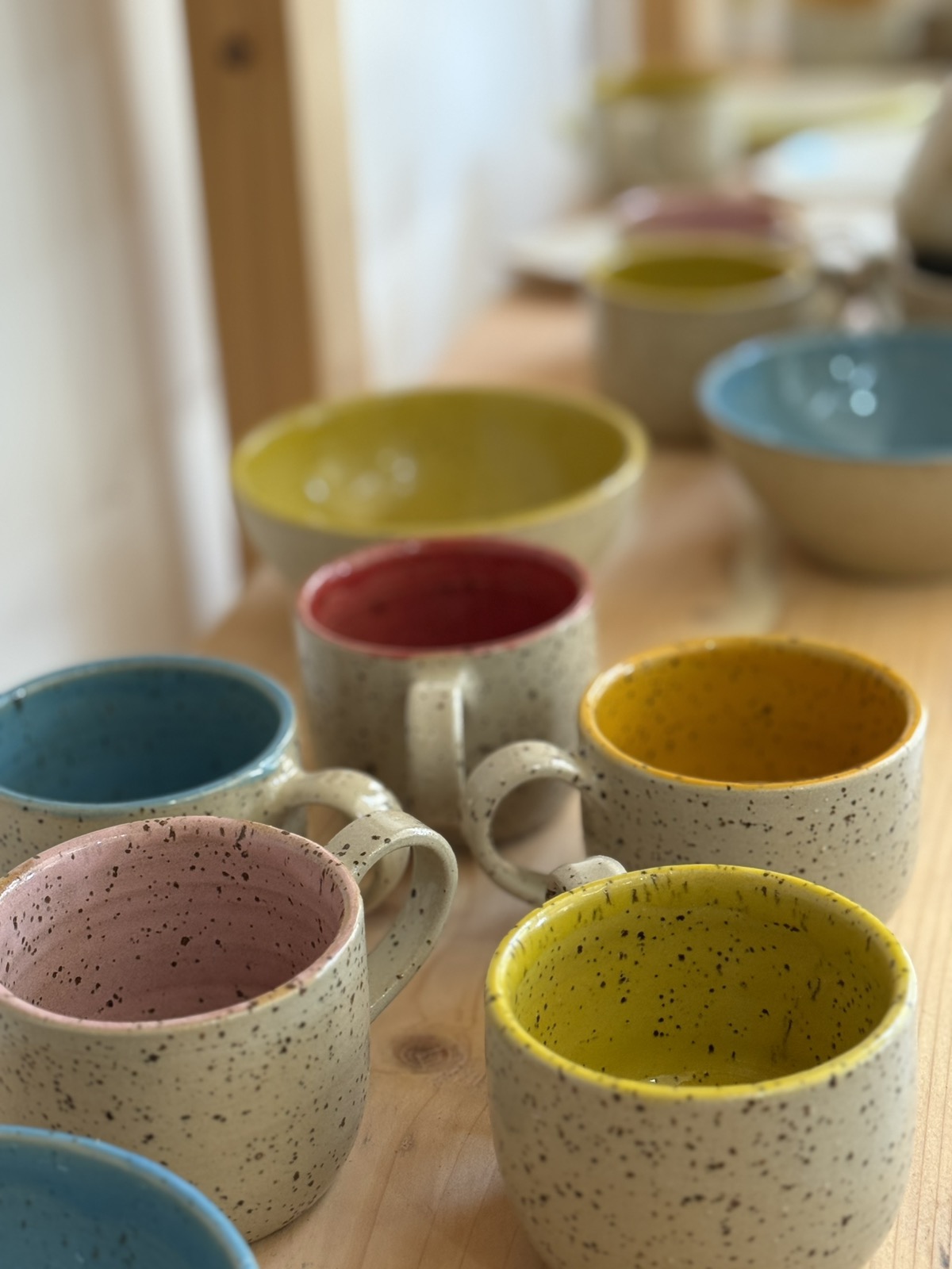Όλα μας τα κεραμικά είναι χειροποίητα και ψημένα στους 1260°C, κατασκευασμένα με υψηλής θερμοκρασίας πηλό (stoneware) και είναι κατάλληλα για χρήση σε πλυντήριο πιάτων και φούρνο μικροκυμάτων.